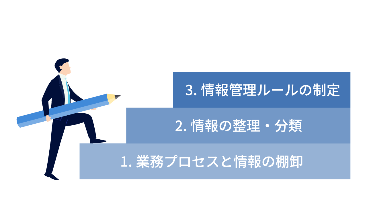 情報管理ルールの制定に向けた3つのステップ